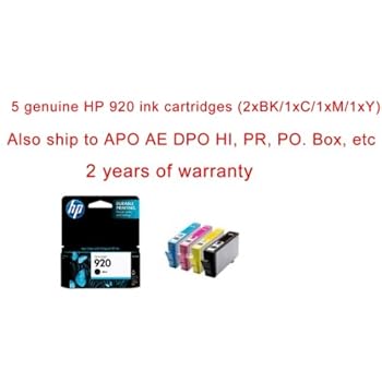 If you need to get 5 Genuine original HP 92O Ink-jet printing Cartridge (2xHPCD971AN black,1xHPCH634AN cyan, 1xHPCH635AN Magenta, 1xHPCH636AN yellow) for Hewlett Packard OfficeJet 6000 6500 7000 Wireless All-in-one AIO (scan/fax/copy/print) Wide Format Inkjet Multifunction scanner copier Printer. Real authentic OEM brand ink, toner or ribbon work better than refurbished or compatible replacement. Printing for cheap! Photosharp ships to Hawaii, Alaska, APO,FPO, AE, PO Box, Puerto Rico PR, and the Virgin Islands and other US territory address. too. Just